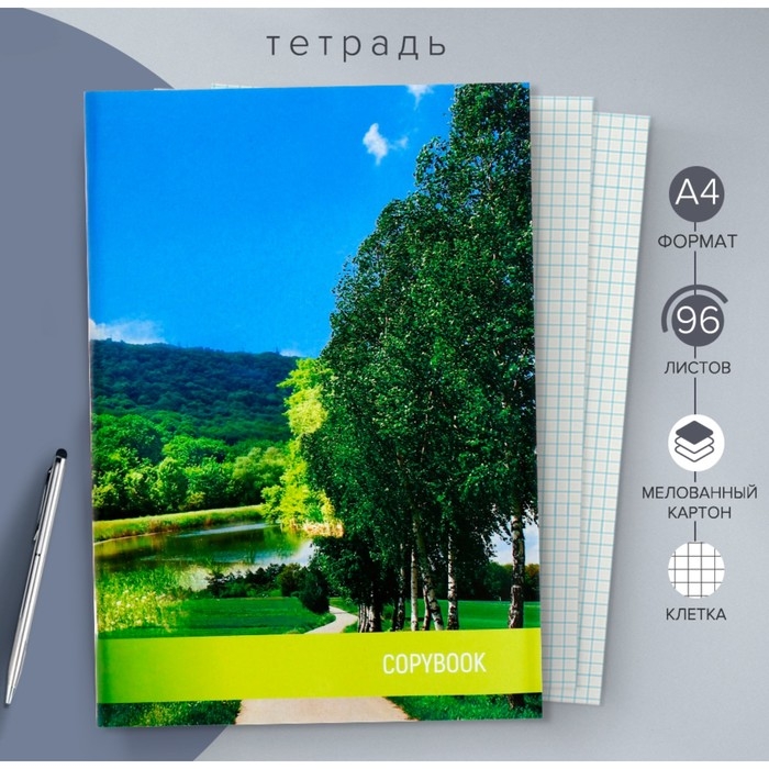 Тетрадь А4, 96 листов в клетку "Природа", обложка мелованный картон, блок №2, белизна 75%, (серые листы)