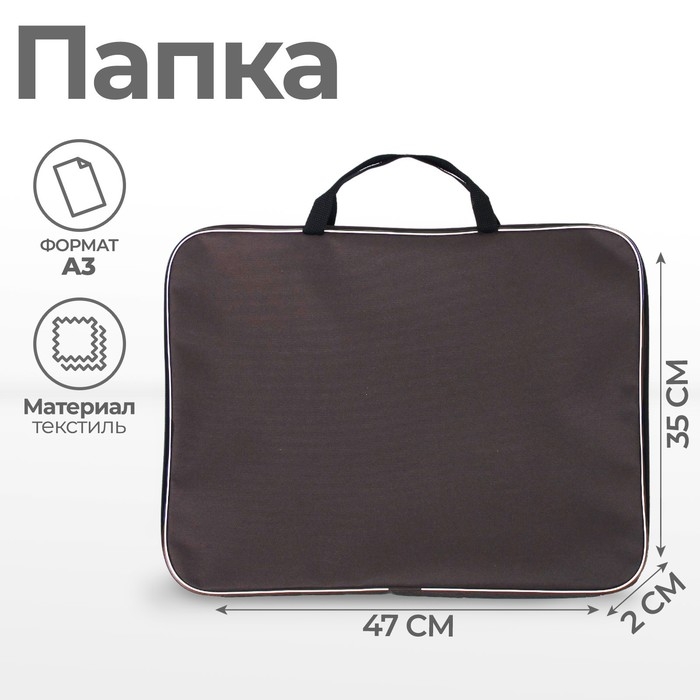 Папка для чертежей и рисунков А3, 470 х 350 х 20 мм, с ручками, текстильная, Calligrata Стандарт, Коричневая, плотность 600D