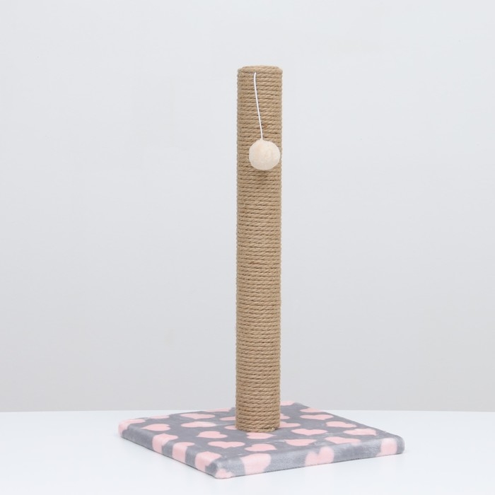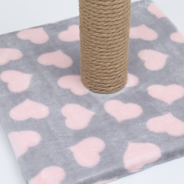 Когтеточка "Радость" на подставке, 30 х 30 х 40 см, джут, серая с розовыми лапками