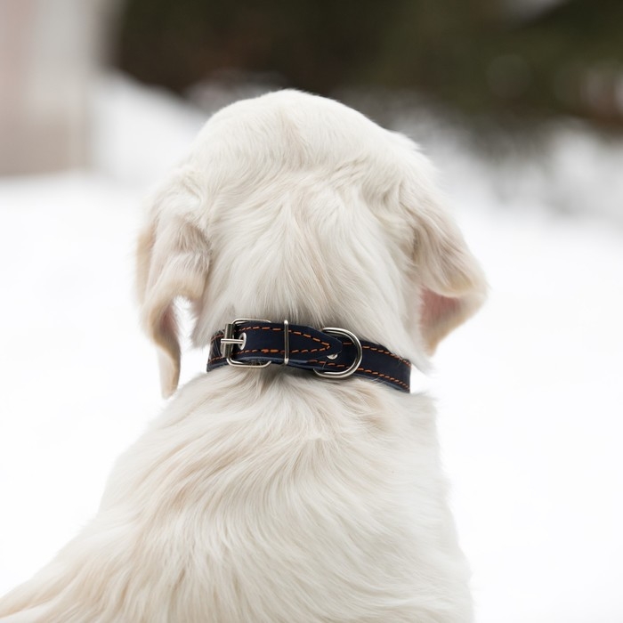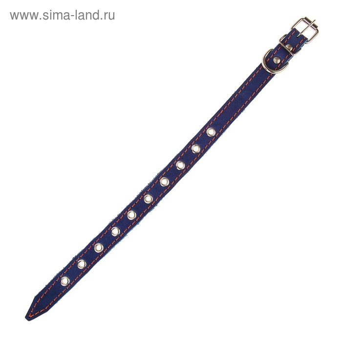 Ошейник кожаный однослойный безразмерный, 45 х 2 см, ОШ 18-39 см, синий