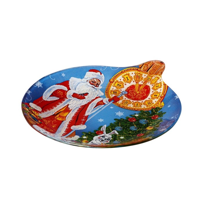 Блюдо новогоднее стеклянное сервировочное Доляна «Ёлочная игрушка. 5 минут», 18,2×15,5 см
