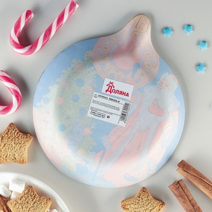 - Оригинальный дизайн: блюдо украшено изображением новогодней ёлочной игрушки, что придаёт ему праздничный вид.