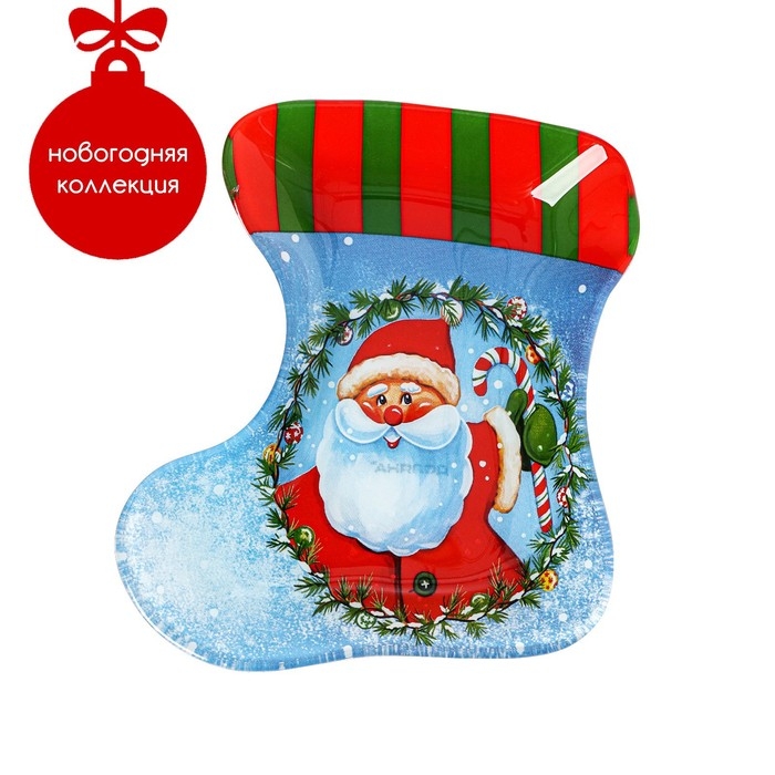 Блюдо новогоднее стеклянное сервировочное Доляна «Сапожок. Дед Мороз», 16×14 см