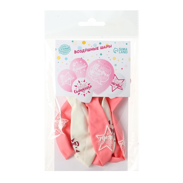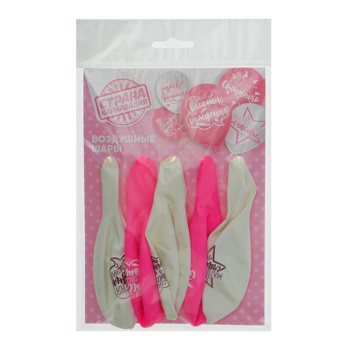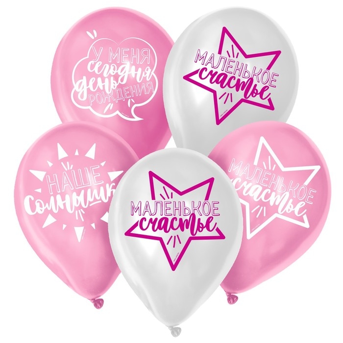 Воздушный шар латексный 12" «День рождения девочки. Для селфи», 5 шт.