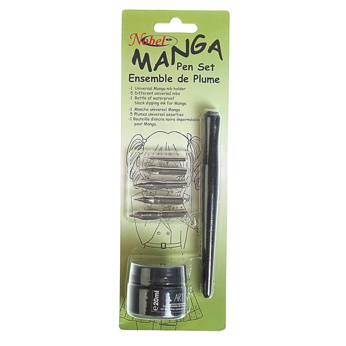 Набор перьев, 5 штук+1 штука держатель для перьев+чернила на водной основе 10 мл, чёрные