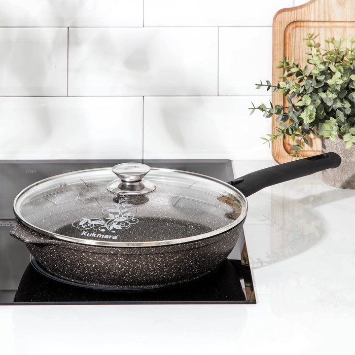 Сковорода, d=26 см, съёмная ручка, стеклянная крышка, антипригарное покрытие, цвет кофейный мрамор