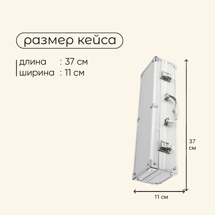 - Размер кейса: 37 × 11 × 8 см.