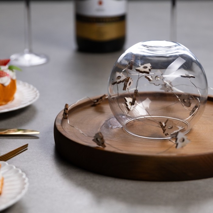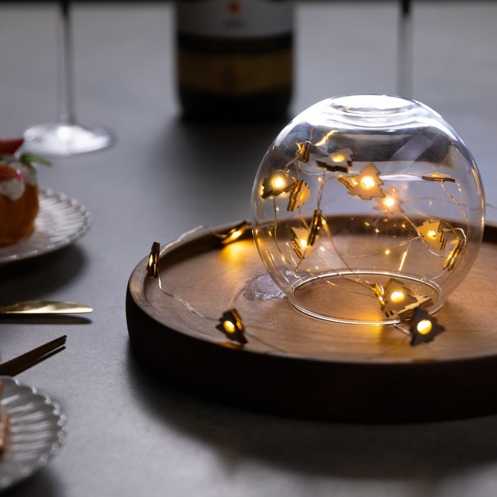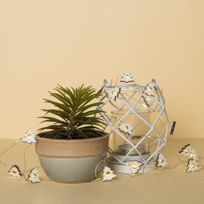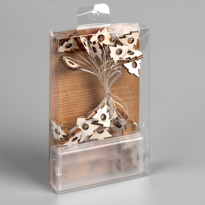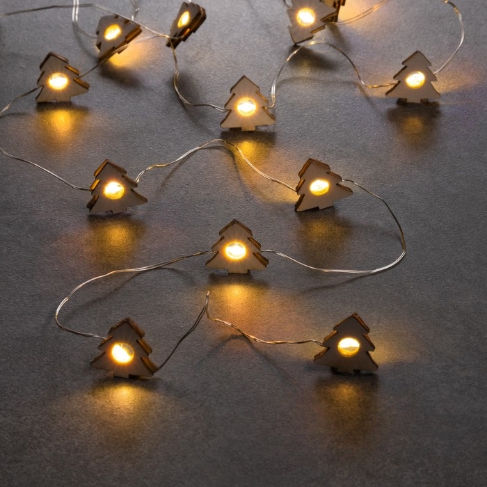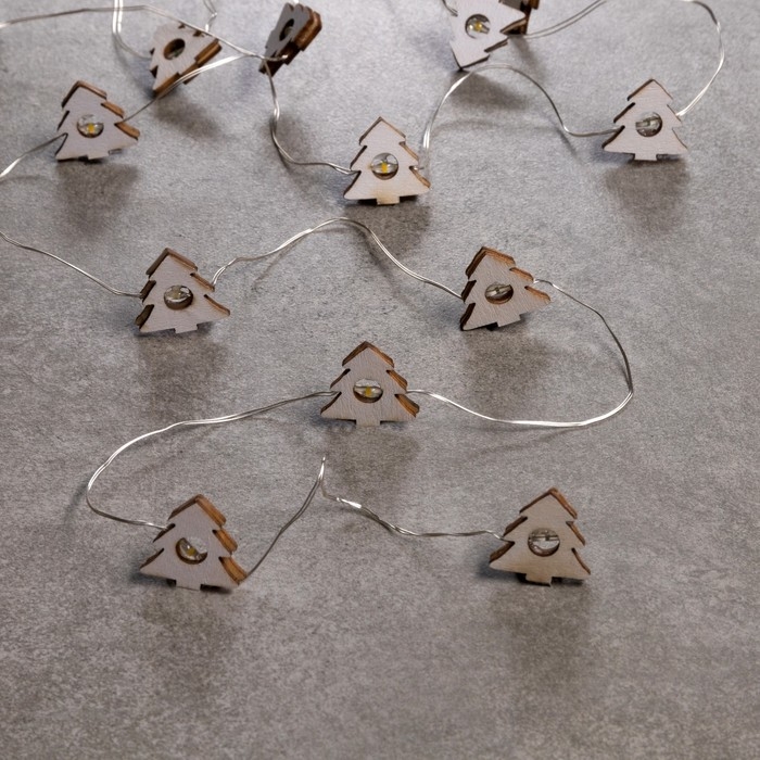 Гирлянда «Нить» 2 м роса с насадками «Ёлочка», IP20, серебристая нить, 20 LED, батарейки ААх2 (нет в комплекте), свечение тёплое белое