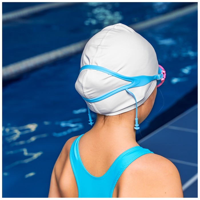 Очки для плавания из силикона, оснащённые берушами, плотно держатся на голове и защищают глаза и уши от попадания в них воды. Очки идут в комплекте с индивидуальной пластиковой упаковкой.