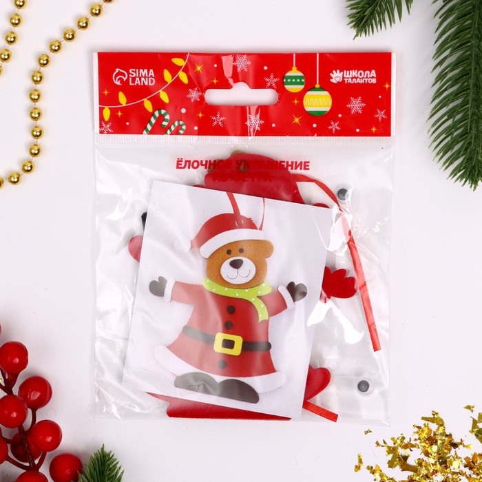 Набор для творчества - создай ёлочное украшение из фетра «Новогодний мишка»