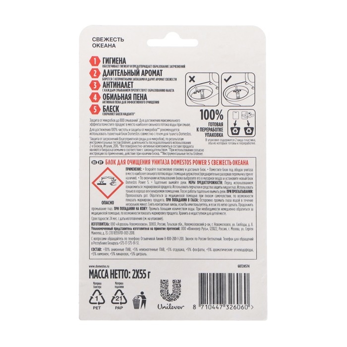 С блоками Domestos Сила 5 поддержание чистоты и свежести вашего туалета стало проще. Domestos Сила 5 – на защите чистоты, гигиены, а значит и здоровья вашей семьи.