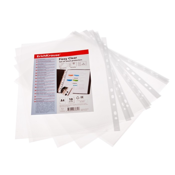Файл-вкладыш А4, 30 мкм ErichKrause "Fizzy Clear", прозрачный, тиснение "апельсиновая корка", вертикальный, вмещает до 50 листов, 100 штук