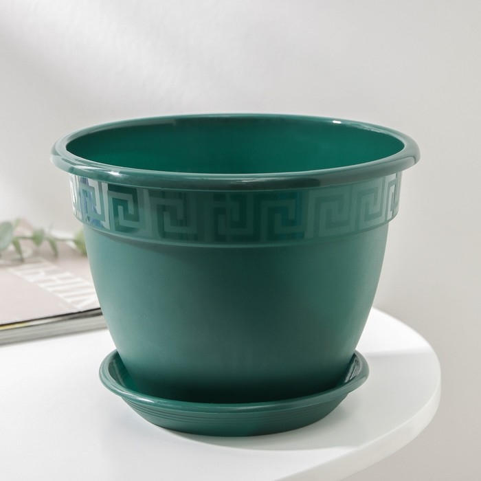 Горшок для цветов с поддоном «Антик», 1.6 л, d=17 см, пластиковый, цвет малахит