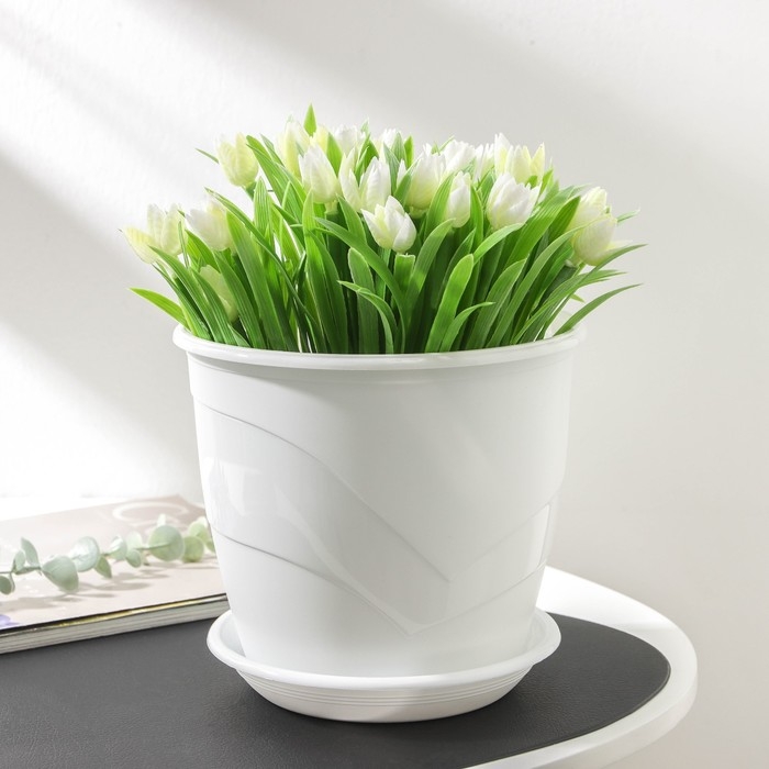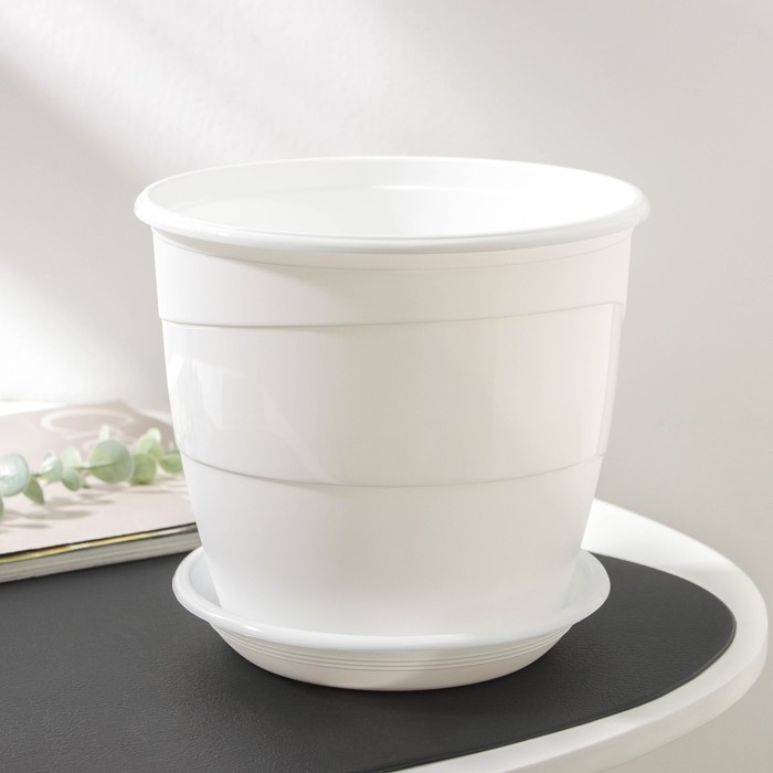 Горшок для цветов с поддоном «Венеция», 3,1 л, d=19 см, цвет белый
