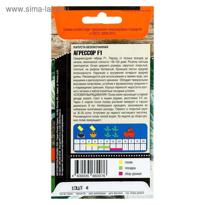 Семена Капусты белокочанной "Агрессор", F1, 10 шт.
