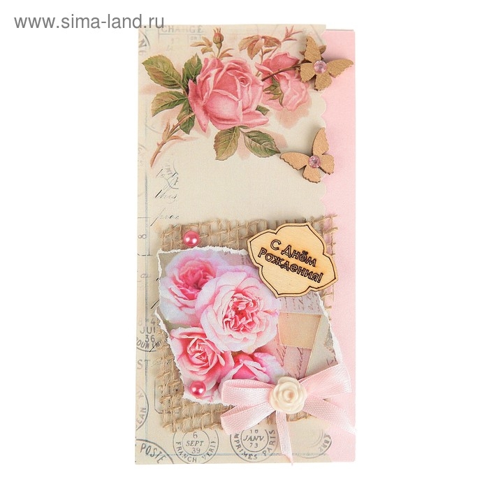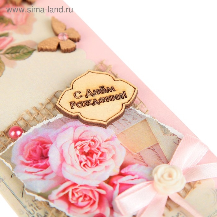 Конверт для денег "С Днём Рождения!" ручная работа, розовые розы