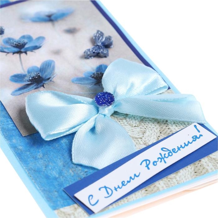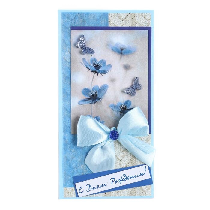 Конверт для денег "С Днём Рождения!" ручная работа, синие цветы, бабочка
