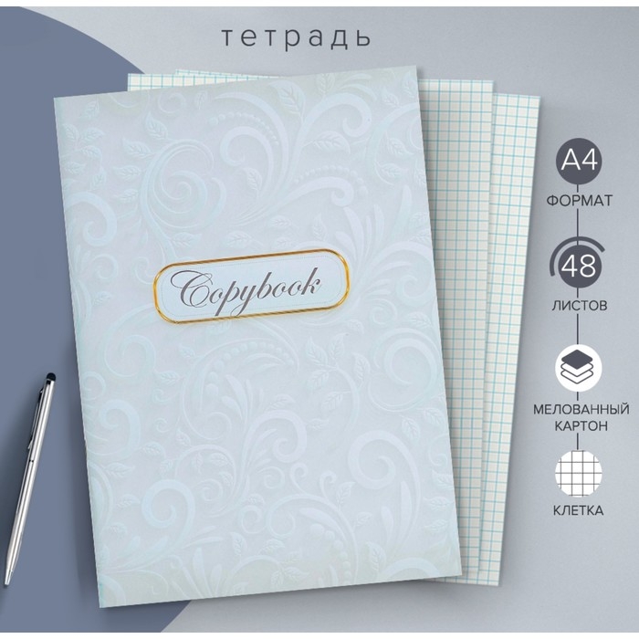 Тетрадь А4, 48 листов в клетку Calligrata "Белые узоры", обложка мелованный картон, блок офсет