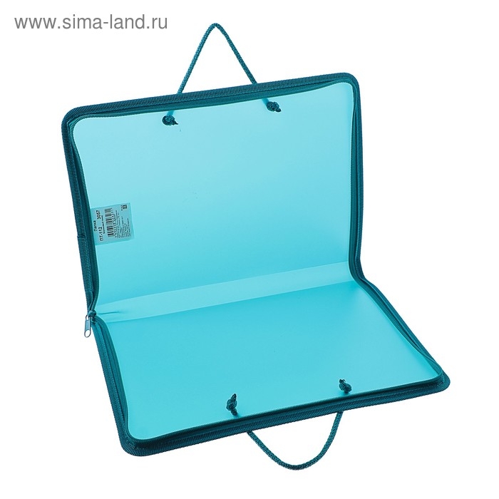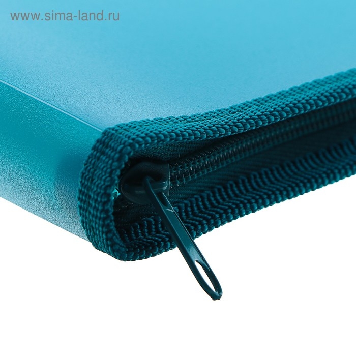 Папка с ручками А4, 230 х 185 х 25 мм, молния вокруг, плстиковая, ПТ-112, "Офис", тонированная, цвет бирюзовый