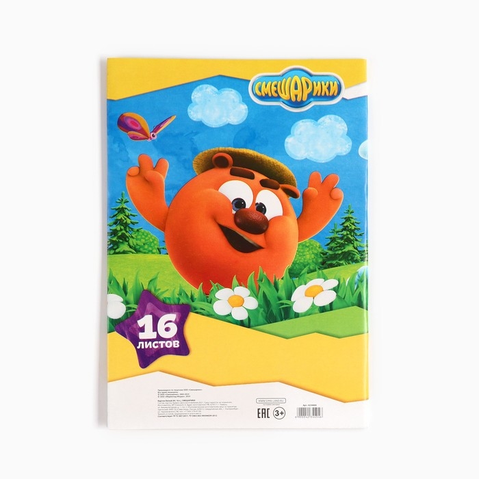 Картон белый, А4, 16 листов, немелованный, односторонний, в папке, 220, г/м², Смешарики