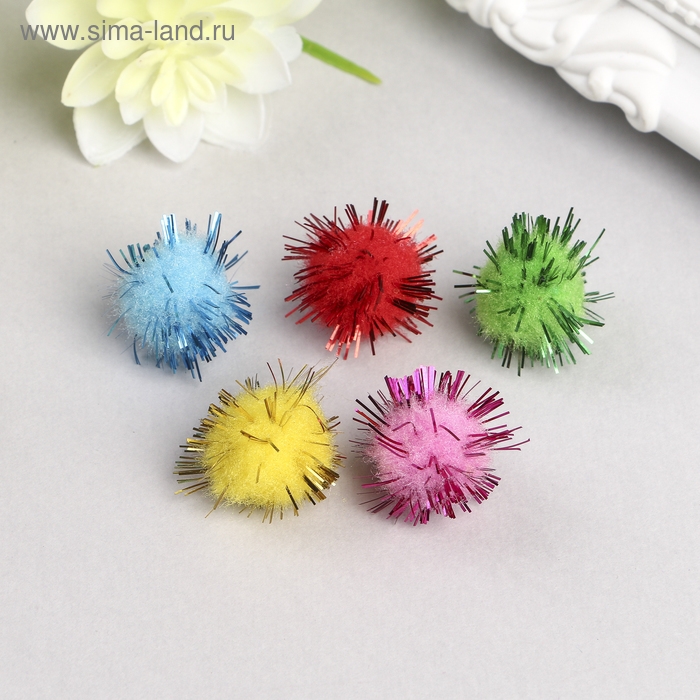 Помпоны для творчества, блестящие, 5 цветов, 15 мм, (набор 50 шт)