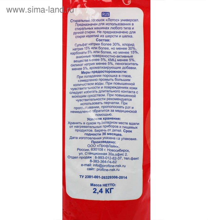 Стиральный порошок Lotos, универсальный, 2.4 кг