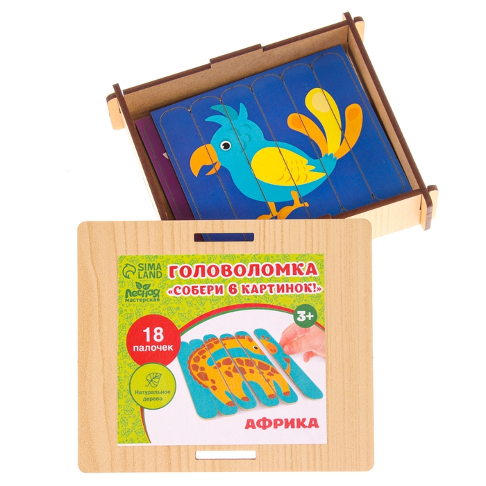 Головоломка. Собери 6 картинок «Африка», двусторонние палочки