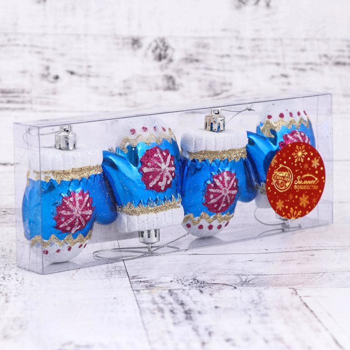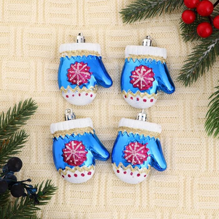 Украшение ёлочное "Варежка со снежинкой" (набор 4 шт) 6х5 см, синий