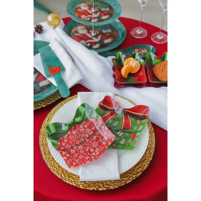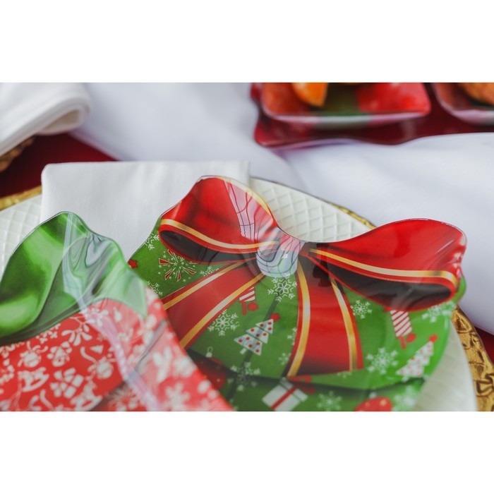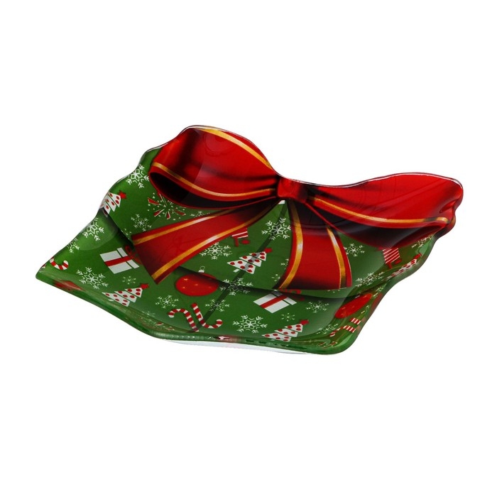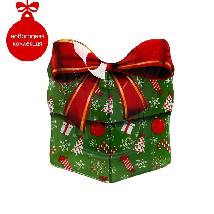 Блюдо стеклянное сервировочное Доляна «Подарок. Счастливого Нового года», 15,1×17,3 см