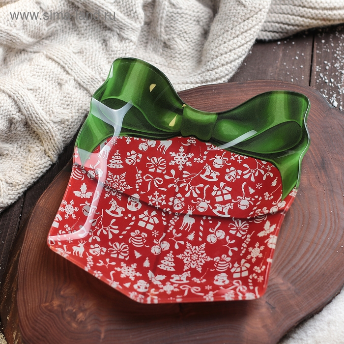 Блюдо стеклянное сервировочное Доляна «Подарок. Новогоднее чудо», 15,1×17,3 см