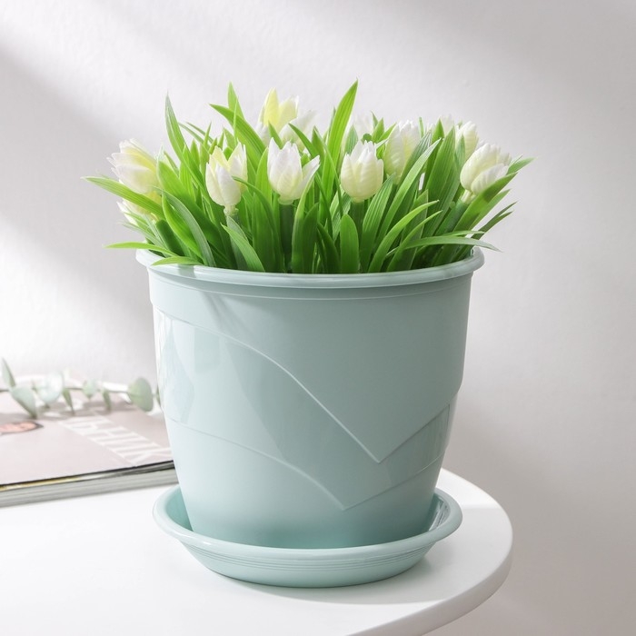 Горшок для цветов с поддоном «Венеция», 2 л, d=16 см, цвет мята