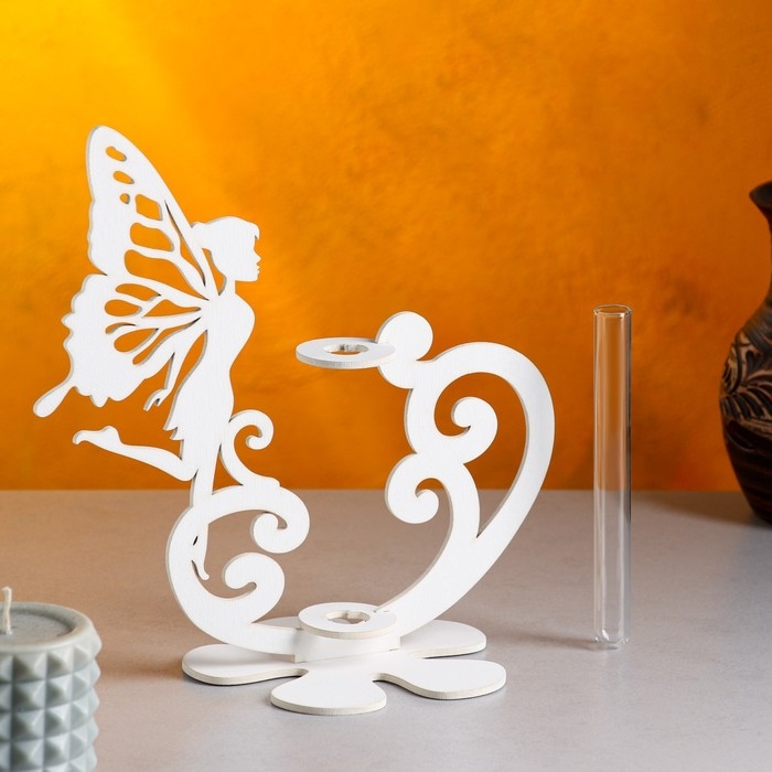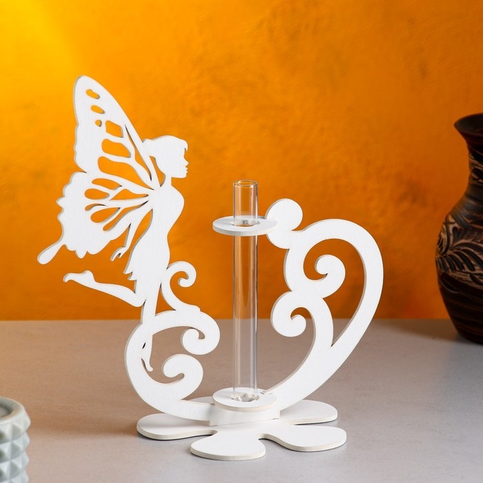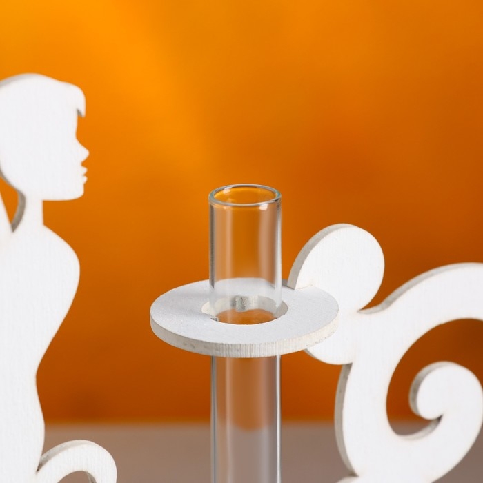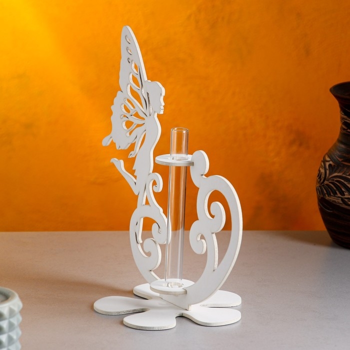 Кашпо деревянное 13.5×13×24 см с 1 колбой "Фея", белый Дарим Красиво