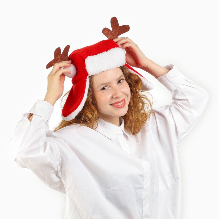 Шапка новогодняя карнавальная «Ушанка» с рогами