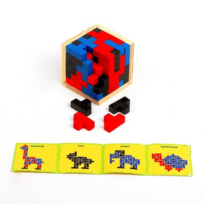 Предложите ребёнку разобрать куб, а затем, пермешав все детали, попросить составить куб снова. Также вы можете составлять картинки по схемам из пособия, которое есть в комплекте.
