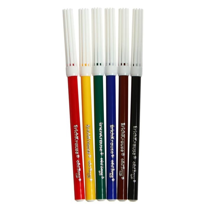 Фломастеры 6 цветов, ErichKrause Easy Washable, блистер, суперсмываемые, ультраяркие цвета, МИКС
