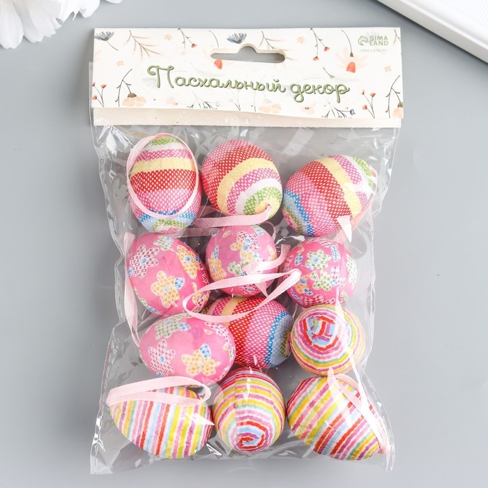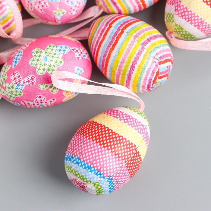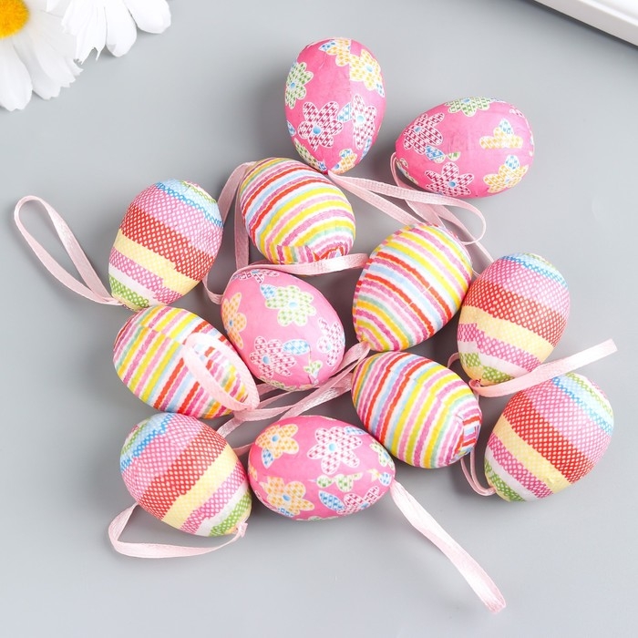 Декор пасхальный подвеска "Яйцо - полосочки" набор 12 шт яйцо 3х4 см