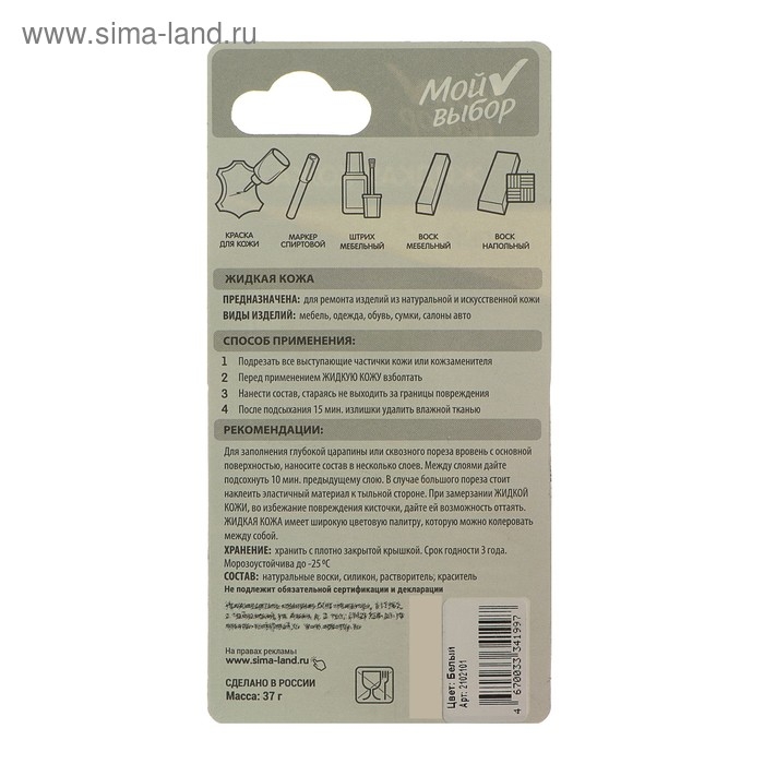 Рекомендации: чтобы заполнить глубокую царапину или сквозной порез вровень со сквозной поверхностью, наносите состав в несколько слоев, предварительно дав подсохнуть предыдущему слою. В случае большого пореза, стоит наклеить материал к тыльной стороне кожи. Для защиты восстановленного повреждения от загрязнения, а также для выравнивания степени блеска рекомендуем использовать фиксирующий лак Мастер Сити. При замерзании жидкой кожи, во избежание повреждения кисточки, дайте ей возможность оттаять. Жидкую кожу можно колеровать между собой. Хранить с плотно закрытой крышкой. Срок годности 5 лет с даты изготовления см. на упаковке. Морозоустойчива до – 25 °C.