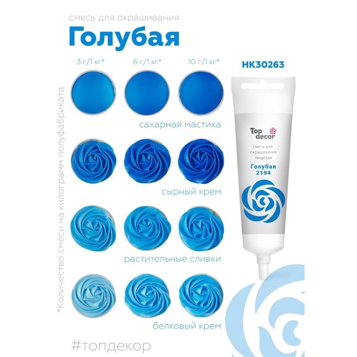 Пищевой краситель Top Decor гелевый, голубой, 100 г
