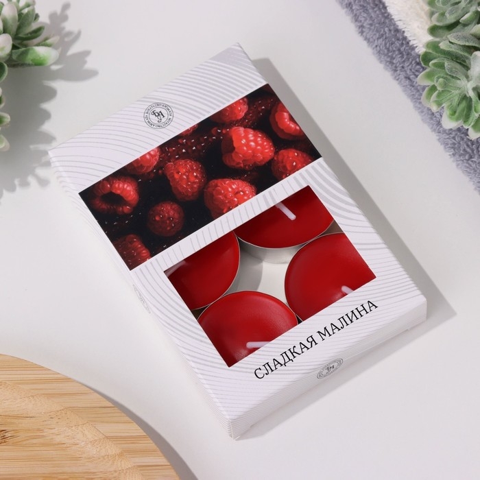 Набор чайных свечей ароматизированных "Сладкая малина" в подарочной коробке, 6 шт