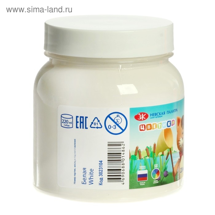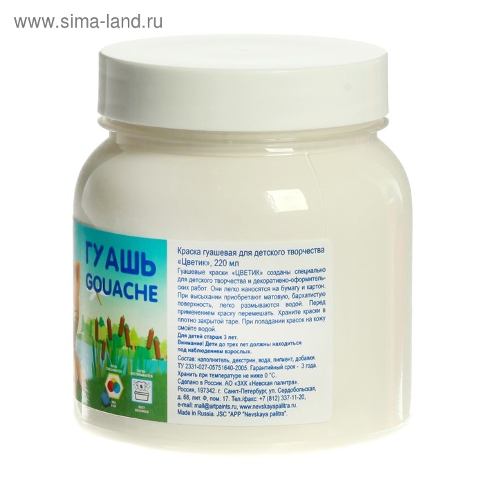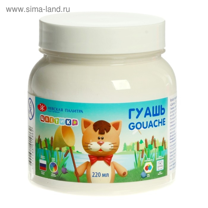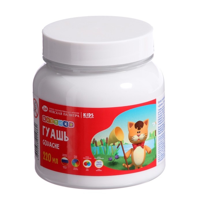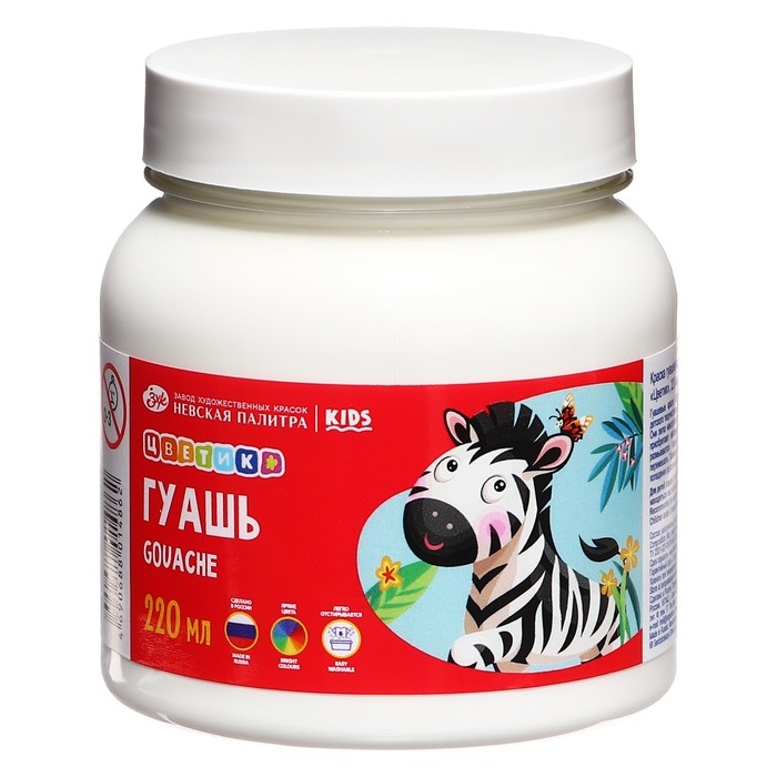 Гуашь в банке 220 мл, ЗХК "Цветик", белая, 3023104
