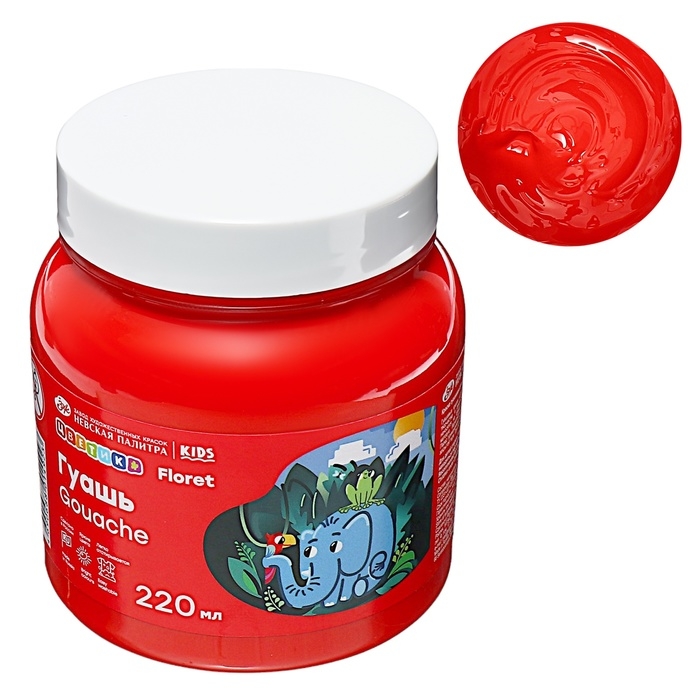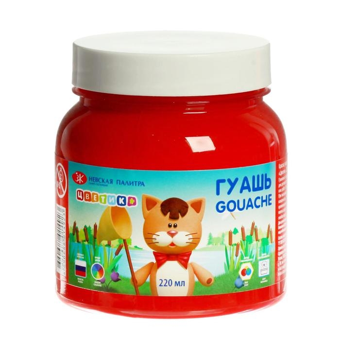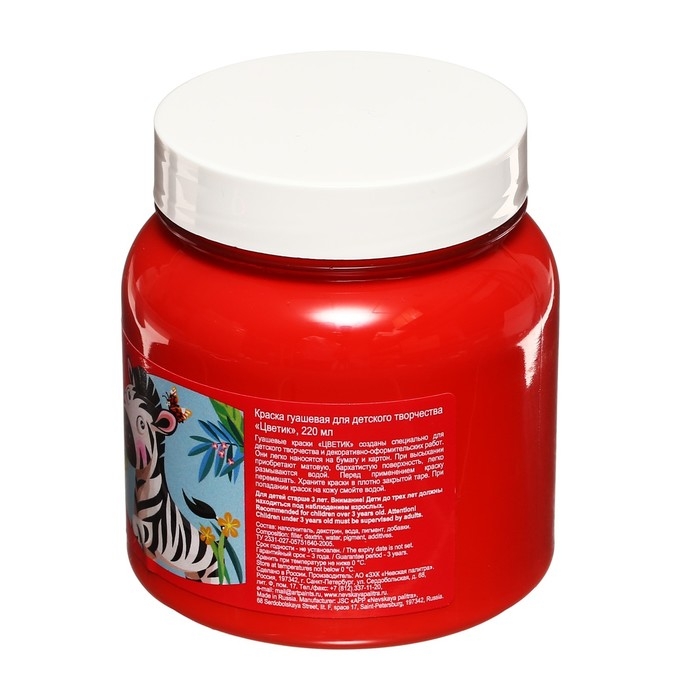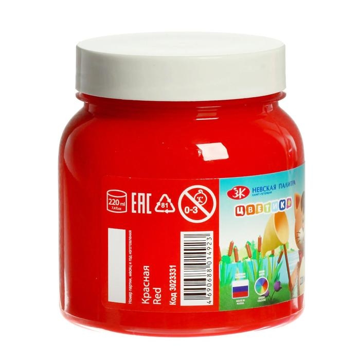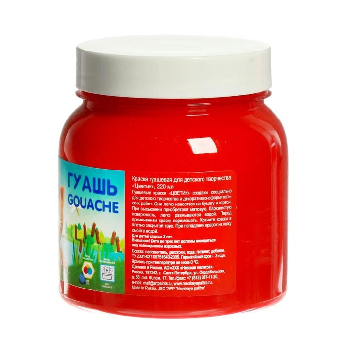 Гуашь в банке 220 мл, ЗХК "Цветик" красная (3023331)