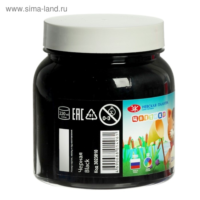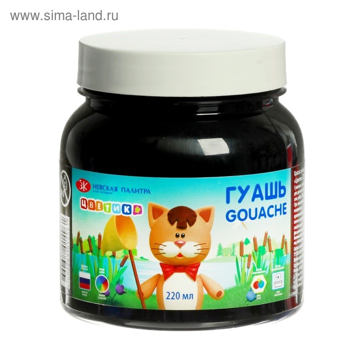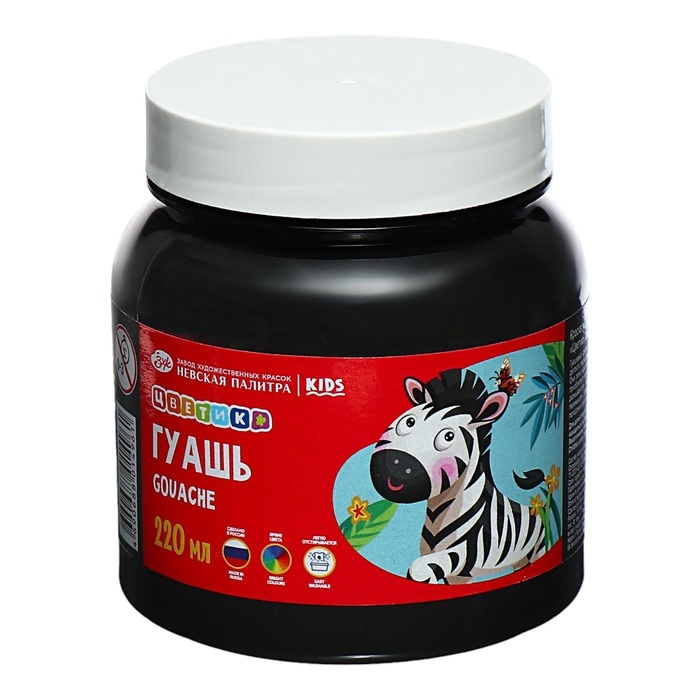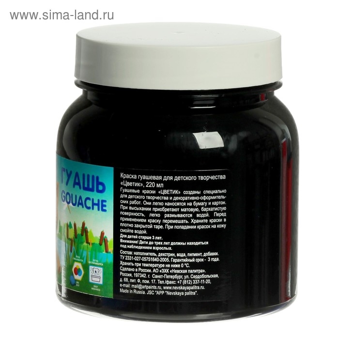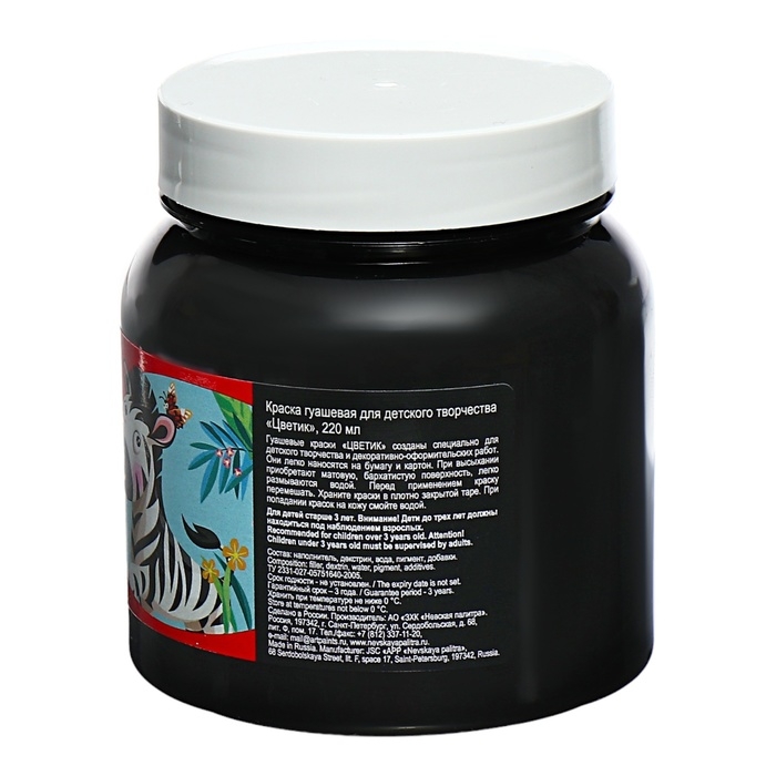 Гуашь в банке 220 мл, ЗХК "Цветик" чёрная (3023810)