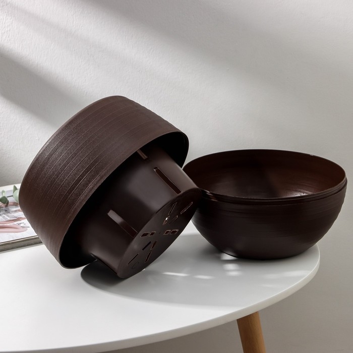 Горшок для цветов с поддоном «Япония», 3 л, цвет тёмно-коричневый