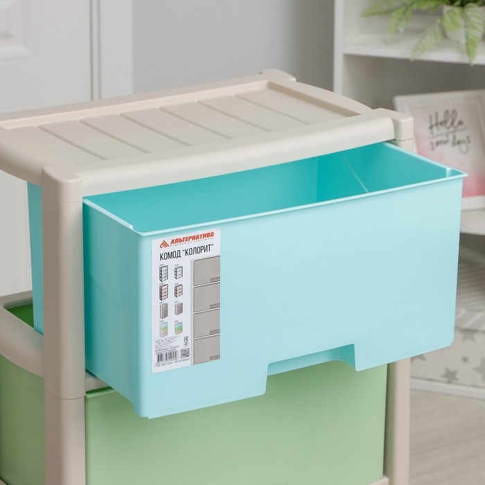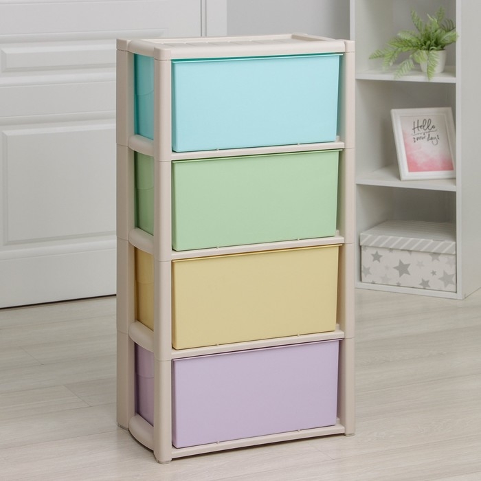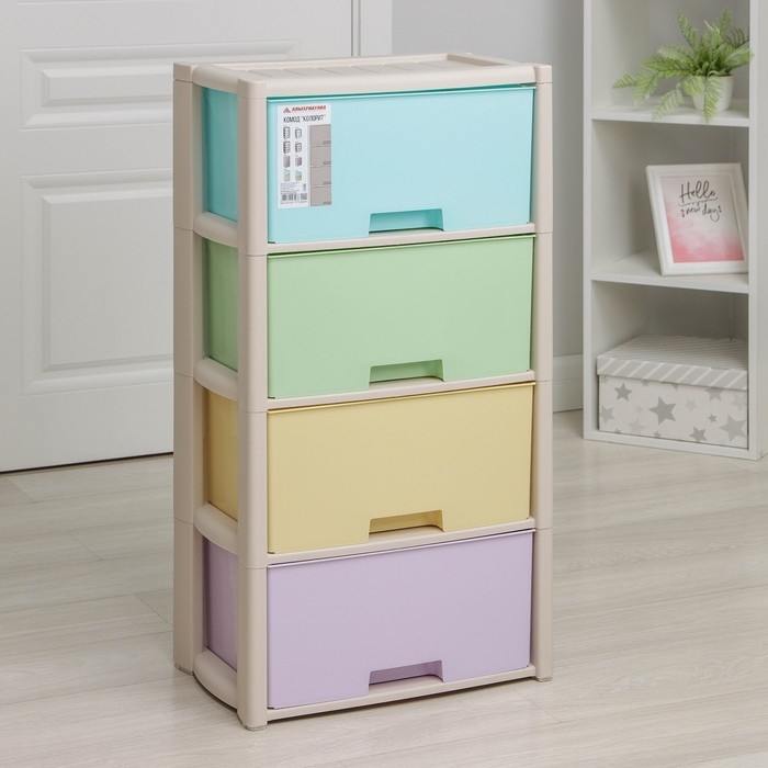 С помощью практичного пластикового комода вы правильно организуете хранение вещей. Изделие имеет жёсткую конструкцию за счёт цельных боковых стенок. Отсутствие острых углов делает его безопасным для ребёнка. Комод изготовлен из экологически чистого материала, не содержит вредных веществ.