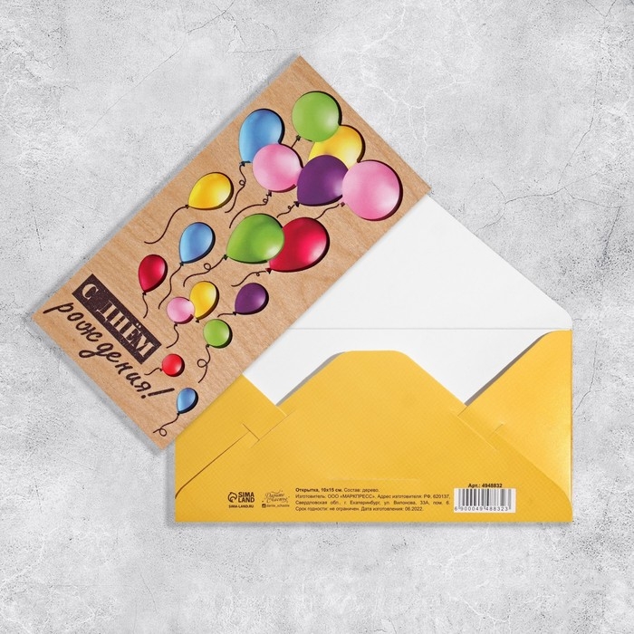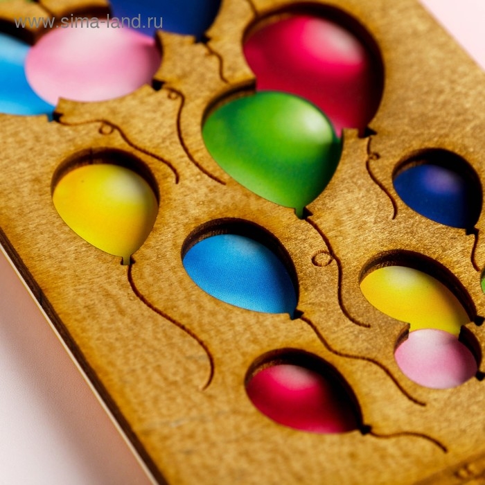 Конверт для денег с деревянным элементом "С Днём Рождения" шары, 16,5 х 8 см