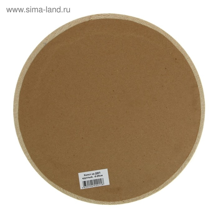 Холст круглый на оргалите 4 мм, d-25, хлопок 100% акриловый грунт, мелкое зерно, 250 г/м²