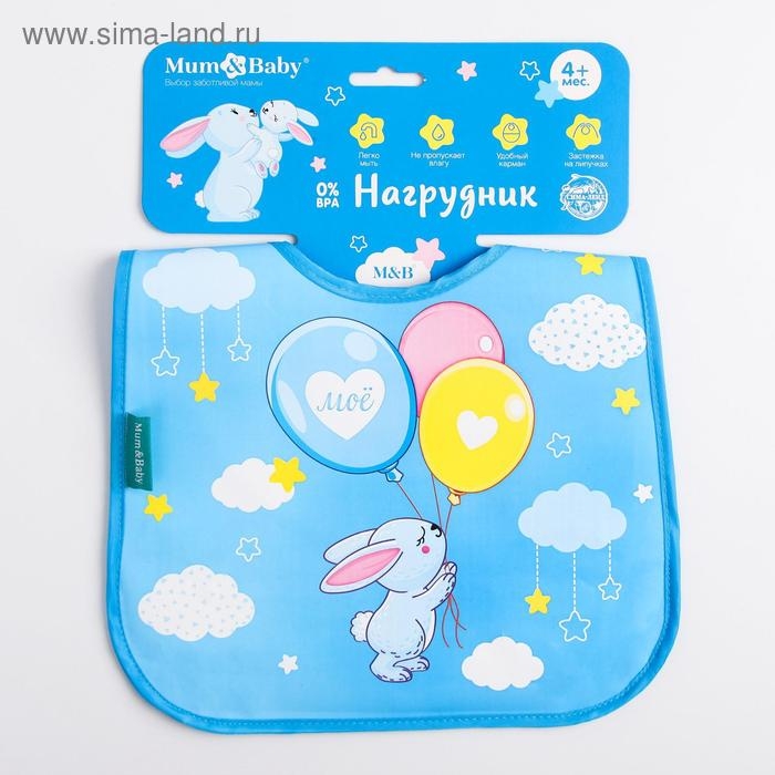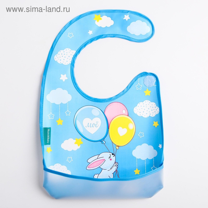 Нагрудник для кормления «Зайка» непромокаемый на липучке, с карманом