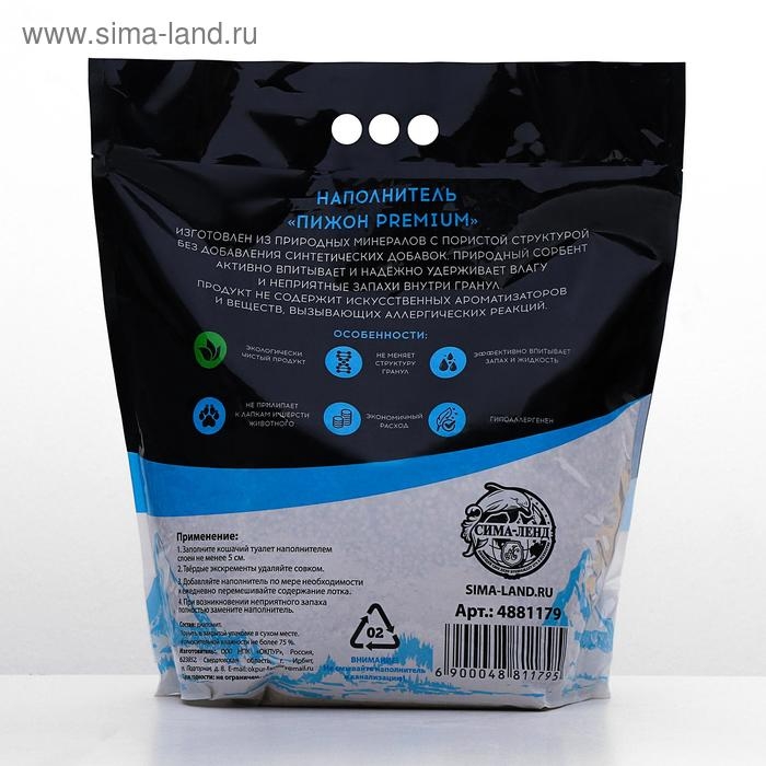 Наполнитель минеральный впитывающий "Пижон Premium", для длинношерстных кошек, 5 л