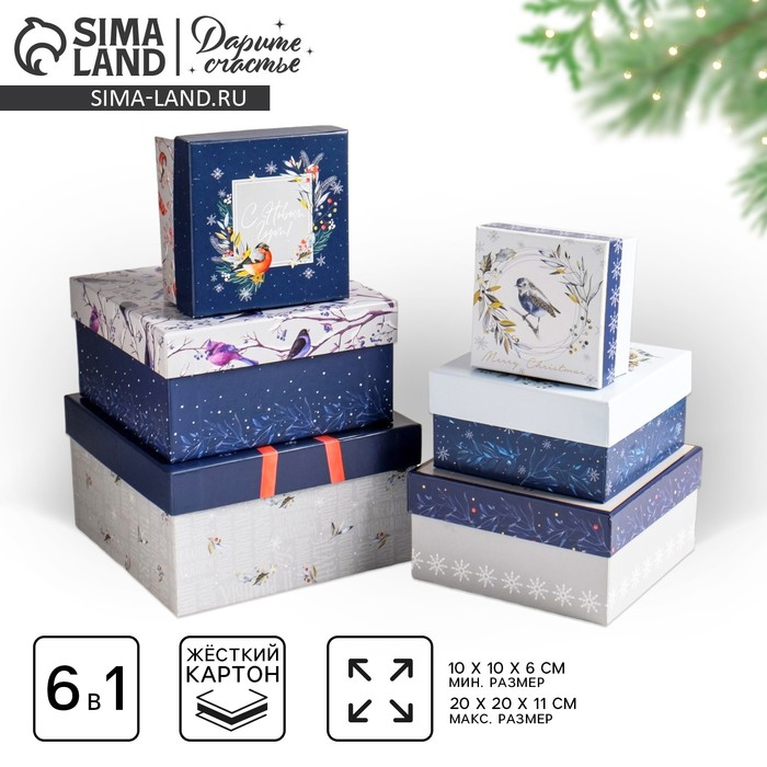 Набор подарочных коробок 6 в 1 «Новогодний», 10.2 х 10.2 х 6 см - 20 х 20 х 11 см, Новый год