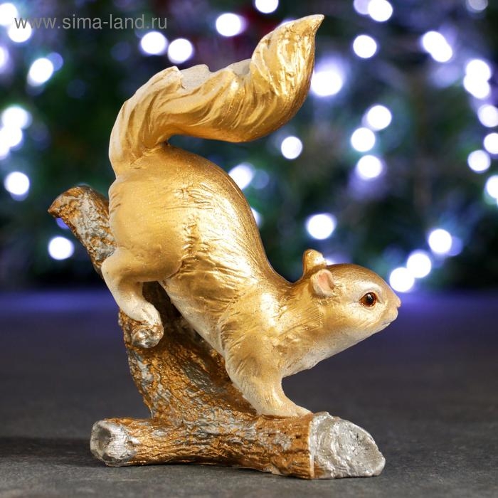 Новогодняя фигура "Белка на ветке" золото, 7х13х16см